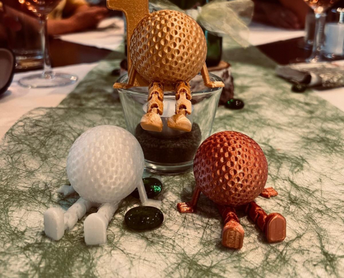Die Siegertrophäen wurden von unserem Clubmitglied Horst Wild gestaltet. Diese 3 „Gedruckten Golfbälle“ fanden bei den Ladies großen Anklang und wurden mit der schönen Tischdekoration, von Waltraud Seemann, immer wieder neu arrangiert und abgelichtet.